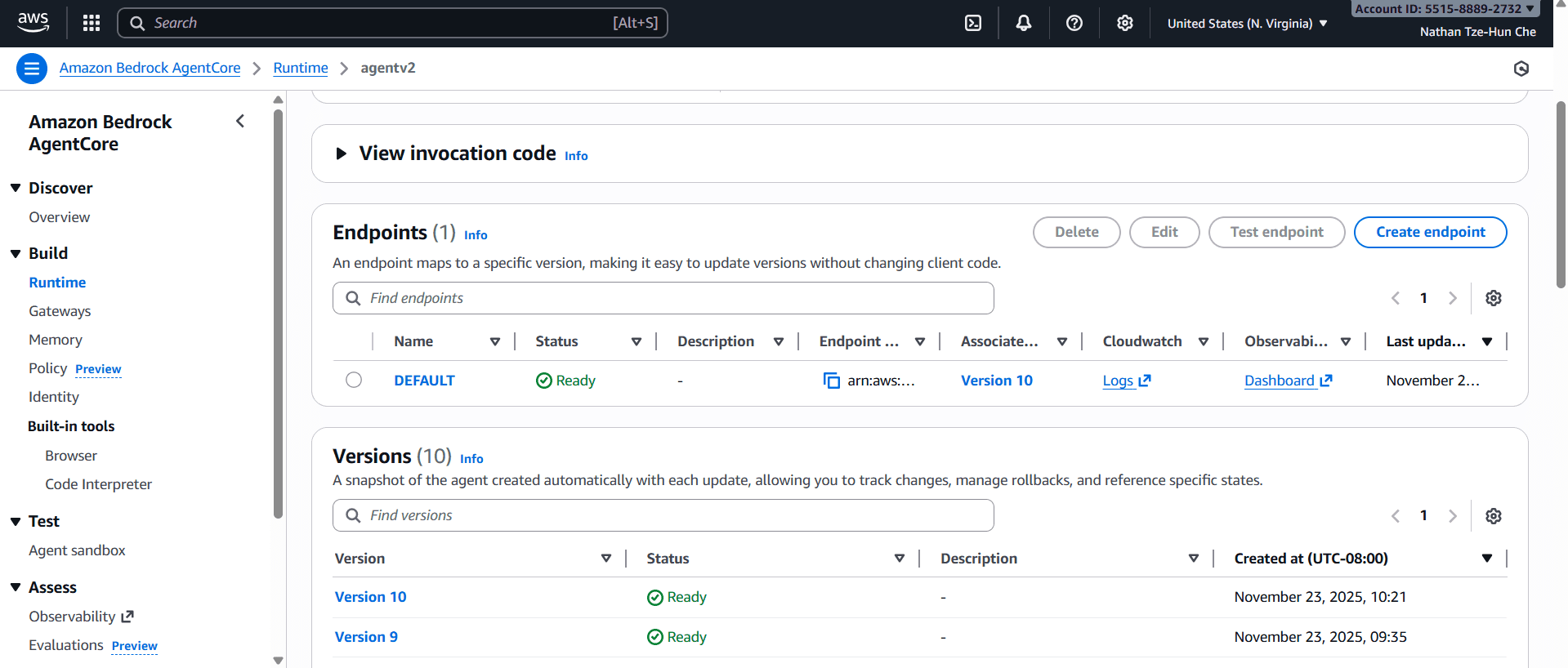 AWS Console Account and permission to provision AgentCore, Bedrock, and CloudWatch.