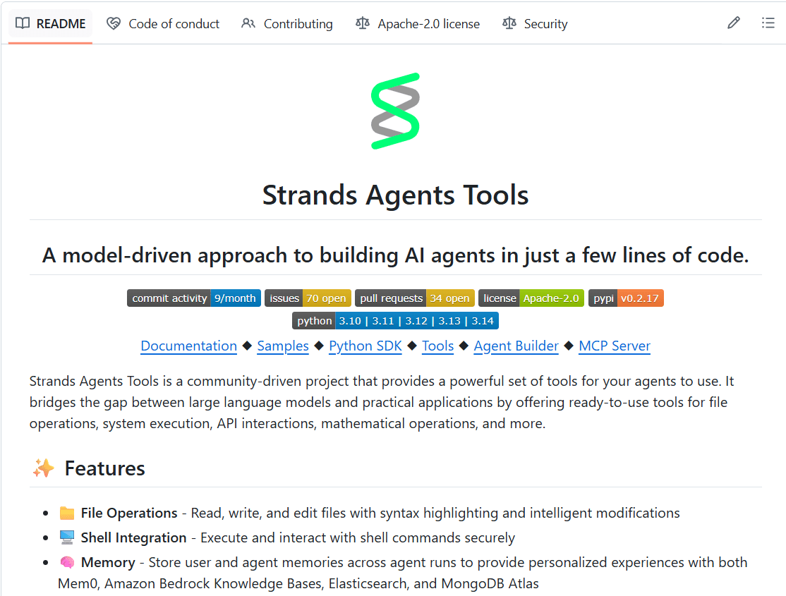 💡These tools are the official integrations from their respective teams, hence I highly recommend diving deeper into the Strands Tools repository to see how production-grade tools are written for AI agents!