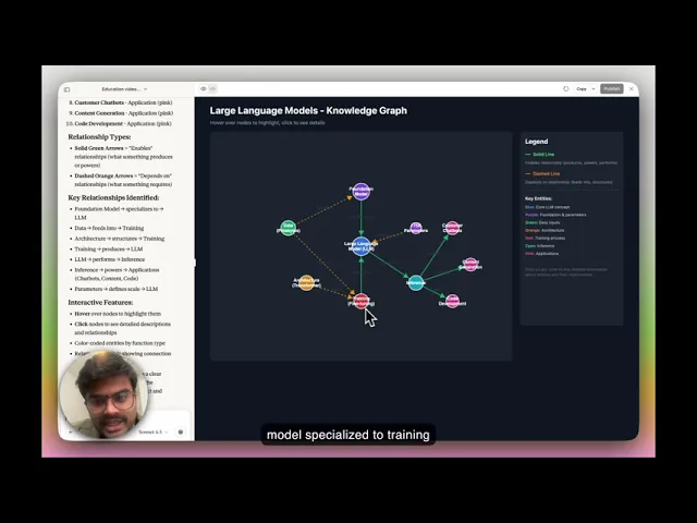 Above, you can see that each node in the knowledge graph represents an individual note, which is linked to other notes generated from the video content.
