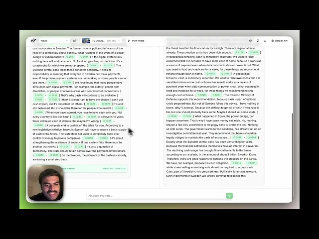 When presented with a request for English transcription within the same query, Gemini again demonstrated subpar performance, yielding an abstract summary rather than an accurate transliterated transcript. It paraphrased and condensed the content, failing to accurately reflect the spoken dialogue, and its timestamps remained imprecise. In contrast, Pegasus delivered an accurate transliterated transcription with appropriately formatted timestamps, suitable for direct export and subsequent production use.