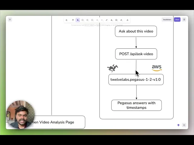 twelvelabs.pegasus-1-2-v1:0including title, risk categories, detected objects, face timelines, and transcript segmentsConversational interface: Video Q&A with clickable timestamp citations
