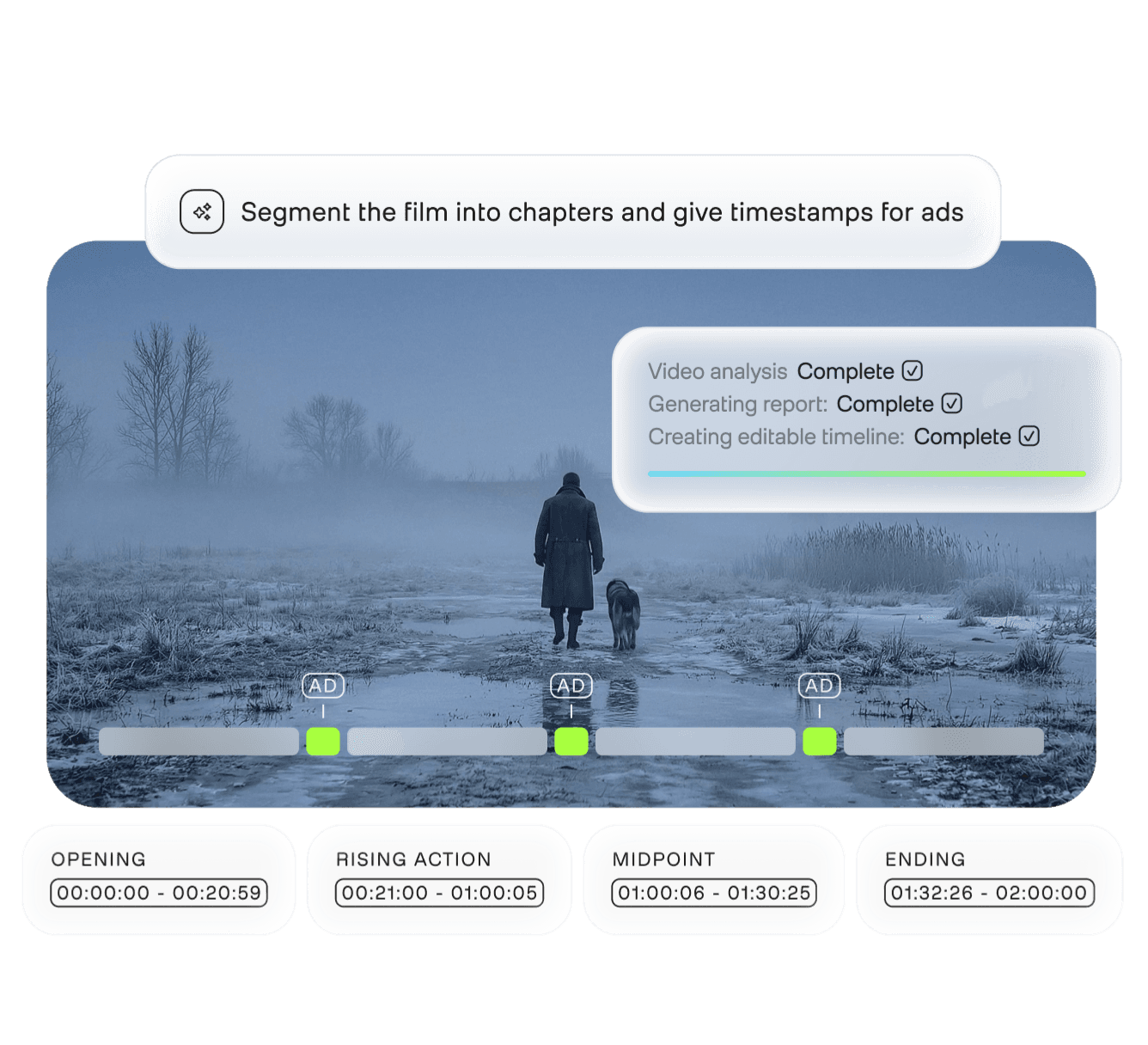 Automatically identify natural breaks, scene changes, and pacing shifts in long-form video – so ads land where viewers expect them, not where they interrupt.