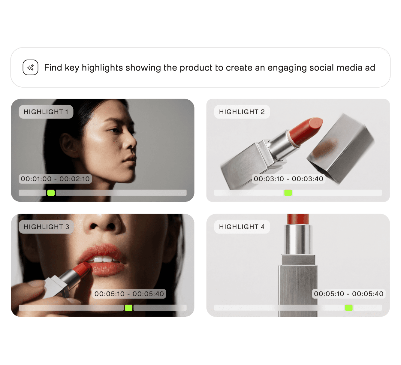 Analyze video at scale to surface patterns and signals – so teams can quickly see what’s working and make better decisions.