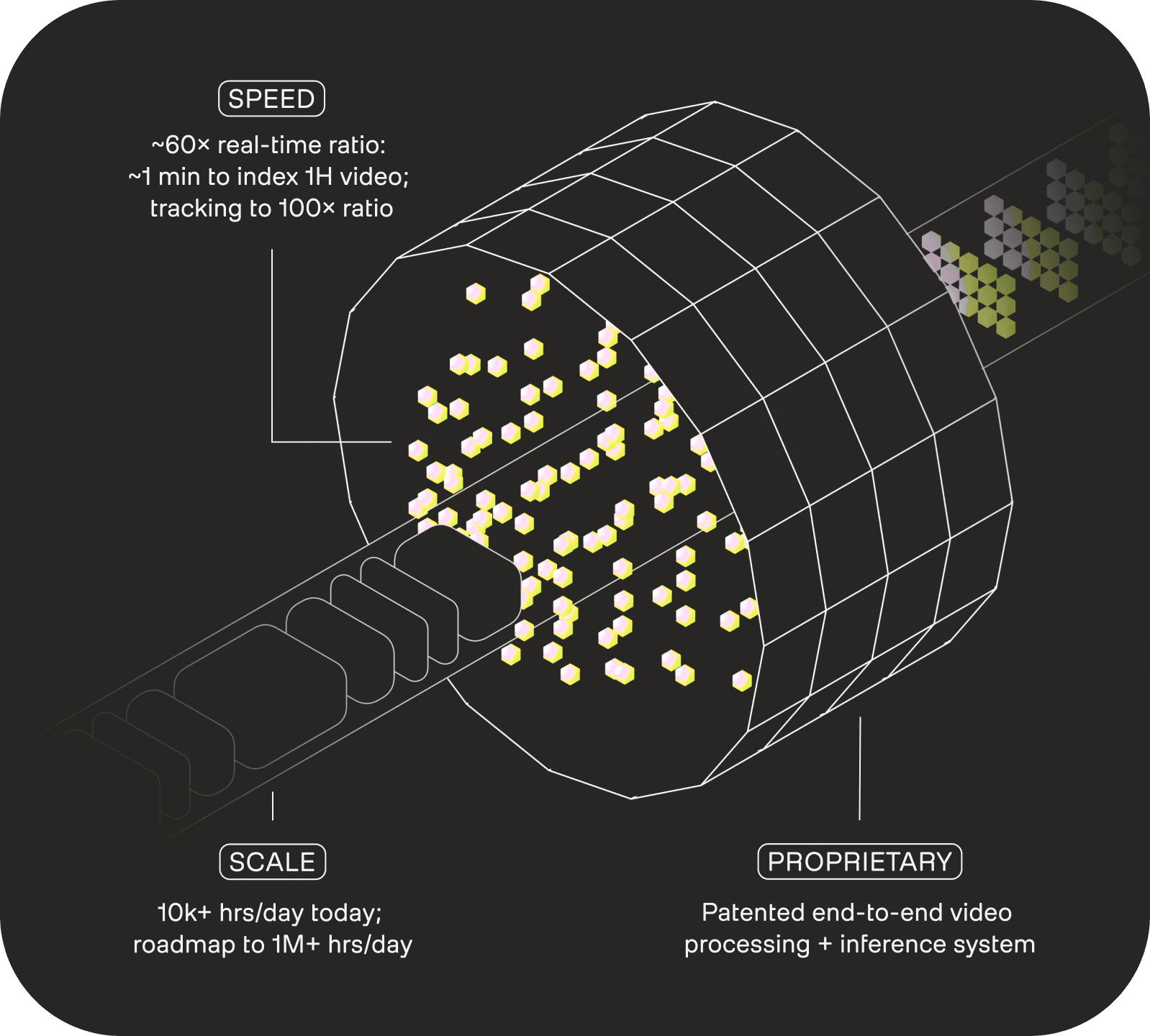 Infrastructure for video intelligence – turning raw video into searchable, AI-ready data at massive scale.